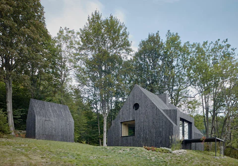 Ein paar Häuser und Hütten finden sich natürlich auch in diesem Themenpakt mit Fokus auf die dunkle Seite der Oberflächenbearbeitung. Längst aber hat sich gezeigt, dass alle Gebäudetypen für diese Veredelungsmethode geeignet sind. Produktionshallen, Gewerbebauten, Wohnhochhäuser oder Schulen, nichts ist mehr undenkbar. Auffällig ist nur, dass der heiße Holzschutz primär etwas für Nordeuropa zu sein scheint – von einem Experimentalbau in Barcelona abgesehen. In kalten Wintern und kühleren Sommern kann die warme, eben aber auch fast schwarze Ästhetik vielleicht besser überzeugen.