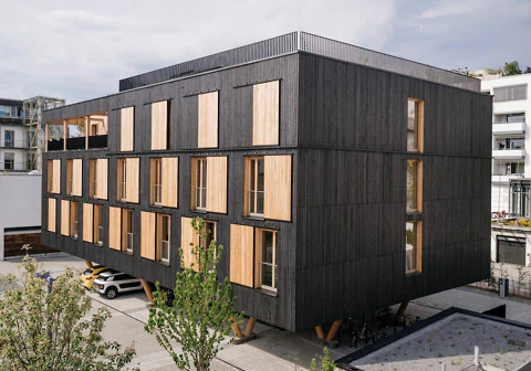 Es mag an Terunobu Fujimori liegen, dass viele Menschen karbonisiertes Holz vor allem mit kleineren Häusern und Hütten in Verbindung bringen. Der japanische Pionier des ökologischen Bauens hat zur internationalen Popularisierung dieser Schutztechnik jedenfalls entscheidend beigetragen. Seine bereits 2013 erschienene Baunetzwoche ist auch heute noch absolut lesenswert.