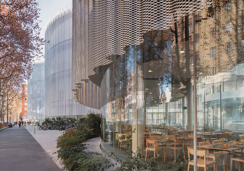 Schon Mitte des 19. Jahrhunderts untersuchte der Architekt und Kunsthistoriker Gottfried Semper in theoretischen Schriften den Bezug zwischen textiler Kunst und Baukunst. Dabei stellte er einen direkten Zusammenhang zwischen den Begriffen „Wand“ und „Gewand“ her. Noch heute sind das „Kleid“ und die „Bekleidung“ eine gern und oft verwendete Analogie, wenn es um die Gebäudehülle geht. Und zwar nicht nur begrifflich, sondern auch ganz praktisch. Eine Suche in unserem BauNetz-Archiv förderte eine ganze Reihe von Bauten zutage, deren Fassaden durch Faltenwürfe, Netzoptik und weiche Wellen eine textile Anmutung erhalten. Oder sie bestehen tatsächlich aus faserbasierten Werkstoffen, wie der Forschungsbau auf dem Hochschulcampus in Reutlingen zeigt.