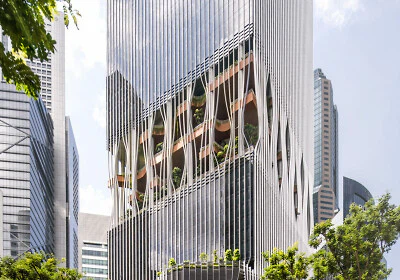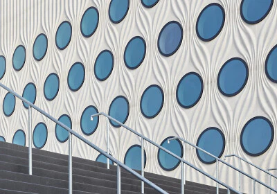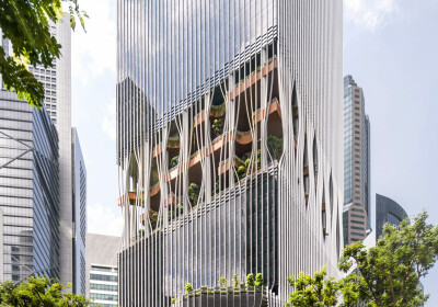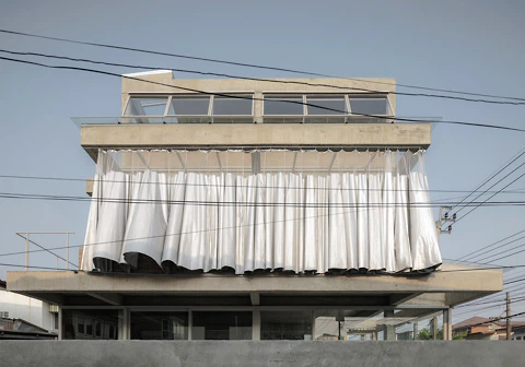 Insbesondere der Vorhang oder Schleier tauchen immer wieder auf, sei es nun ganz real als Schattenspender und Sichtschutz wie bei einem Wohnhaus in Bangkok oder metaphorisch in Form von Fassaden, die raffiniert gefaltet, gerafft oder drapiert erscheinen. Besonders spektakulär wird es dann, wenn dieser Vorhang auch noch beweglich ist und sich öffnen oder schließen lässt wie im Fall eines Kulturzentrums in Shanghai. Auffällig oft sind es Kulturzentren und andere öffentliche Bauten, deren Gebäudehüllen das Spiel von Verhüllung und Enthüllung durchdeklinieren. Das mag daran liegen, dass sie genau das tun sollen, nämlich auffallen. Neugierig machen all diese Bauten auf jeden Fall, denn nicht zuletzt haben es Vorhänge ja an sich, dass man nur zu gerne wissen möchte, was sich dahinter verbergen mag. (da)