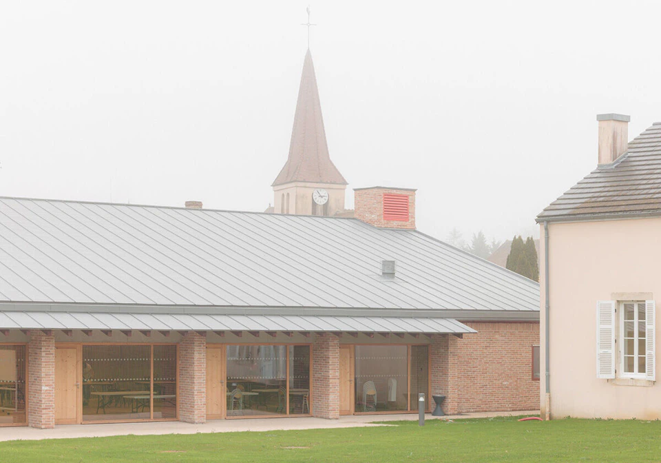 Es mag an den nebligen Fotografien liegen, oder an der bewussten Zurückhaltung des Entwurfs: Der Neubau von LINK Architectes (Lyon) in Corberon drängt sich nicht auf, sondern fügt sich nahezu beiläufig ins Dorfbild ein. In der kleinen Gemeinde im Burgund mit rund 400 Einwohner*innen dominieren Stein und Ziegel die Baukultur. Entsprechend selbstverständlich wirkt auch das neue Gemeindezentrum, das diese Materialität aufnimmt, ohne sie zu überzeichnen.