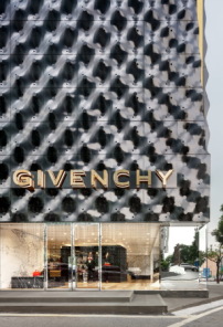 Audrey Hepburn trug in ihren Filmen Givenchy – so wurde Graf Hubert de Givenchy bekannt als Vater des Kleinen Schwarzen. Riccardo Tisci übernahm den Posten des Chefdesigners 2007 und bringt die Marke nach einer schwierigen Zeit wieder zu alter Größe, an die die Architektur anknüpfen will. Die Fassade ist nach Angaben der Architekten grafisch, die Einrichtung minimalistisch. Die verwendeten Materialien wurden sorgfältig ausgewählt: Marmor und Basalt über Parkett sind „elegant und zeitgemäß“.