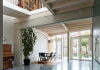 Wer hier schreibt und was hier geschrieben wird? Das bleibt ungenannt, ebenso wie die exakte Lage und die Baukosten des Hauses. Verständlich. Rechercheaufwändige Sachbücher dürften hier aber nicht entstehen, denn um Material auszubreiten fehlt der Platz. Und auch lange Romane schreibt man wohl eher nicht auf dem Sofa. Gegen kritische Theorie spricht wiederum die klassische Axialität des Hauses, die zusammen mit den drei großen Oberlichtern und dem tiefblauen Kamin eine gediegen gravitätische Stimmung schafft. Zum freien Denken dürften sich die Räume aber gut eignen – um das Gedachte dann zügig zu Papier zu bringen. Vielleicht ist dieser poetische Ort das Haus einer Lyrikerin? (gh)