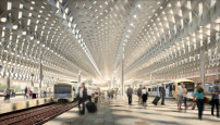 Vielleicht hat es geholfen, dass von allen Finalisten der Entwurf von Herzog & de Meuron (Basel) zusammen mit Hassell (Melbourne) am ehesten an ein einen typischen Bahnhof erinnert (siehe BauNetz-Meldung vom 24.7.13). Jedenfalls haben die beiden Büros nun gegen fünf andere Finalisten den Wettbewerb für die Umgestaltung der Melbourner Flinders Street Station gewonnen. Waren sie bei der Publikumsabstimmung noch hinter Velasquez, Pineda und Medina (Medellín) und John Wardle (Collingwood) mit Grimshaw (London, Melbourne) auf Platz drei gelandet, konnten sie sich schließlich bei der Fachjury unter Vorsitz von Geoffrey London durchsetzen. Weitere Preise wurden nicht vergeben.