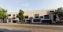 Östlich der Innenstadt in der Nähe des Sachsenplatzes gelegen, schließt der Neubau zusammen mit Bestandsgebäuden einen Baublock und lässt so einen Innenhof entstehen, der das Herz des neuen Campus' werden soll.