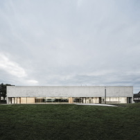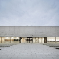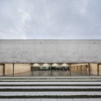 Das Stammareal Beethovenstraße der Hochschule für Technik und Wirtschaft in Aalen (Ostwürttemberg) liegt an einem Häuslebauer-Traum: Das Komponistenviertel besteht aus ordentlich aufgereihten, freistehenden Einfamilienhäusern. Doch an dessen Rand manifestiert sich ein anderer Maßstab: Hier steht, frei auf einer Campuswiese, seit 1968 der so genannte Behnisch-Bau – ein Hochschulgebäude, das längst zur Baugeschichte gehört und 2008-12 saniert wurde. Daneben wurde nun eine neues Hörsaal- und Aulagebäude fertig, das letzten Donnerstag übergeben wurde. Der Entwurf stammt von dem Stuttgarter Büro MGF Architekten, das auf dem neuen Campus Burren derselben Hochschule bereits mit Cafeteria und einem Institutsgebäude vertreten ist.