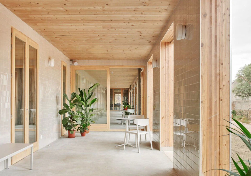 Mit natürlichen Materialien und viel Tageslicht wollen die Architekt*innen den zum Teil traumatisierten Bewohner*innen ein möglichst angenehmes Wohngefühl ermöglichen. So ist auch die Konstruktion aus Brettschichtholz im Innenbereich sichtbar belassen. Das vertikale, orange akzentuierte Band in der Fassade soll die Gemeinschaftsräume hervorheben und einen Bezug zur einstigen Verbindung der Siedlergemeinschaften über die alten Wasserwege des Columbia River herstellen.