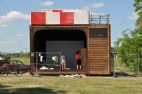 „Die Architektur der 15 Pavillons versteht sich als Beitrag zu einer Diskussion um den sinnvollen Umgang mit Ressourcen. Bei einem Drittel der Ausstellungsräume handelt es sich um Überformungen von Bauten, die zum Bestand des ehemaligen Flugfeldes gehören. Weitere Gebäude werden aus Modulen errichtet, die im Sommer 2011 beim Festival ‚Über Lebenskunst‘ im Haus der Kulturen der Welt zum Einsatz kamen. Bei lediglich drei Pavillons handelt es sich um Neubauten“ (Raumlabor).