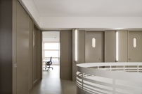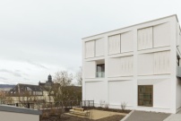 Umgesetzt wurde der Neubau in einer Stahlbetonskelettkonstruktion, was spätere Anpassungen erleichtert. Das konstruktive Raster ist dabei in der hellen Putzfassade ablesbar. Eine Schrägstellung der Außenwände sorgt für variierende Schattenwürfe. (sb)