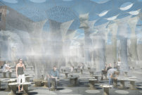 Es ist weder Pavillon noch Dach, sondern vielleicht im besten Sinne eine architektonische Struktur – allerdings eine lebendige. Jenny Sabin Studio wird im kommenden Sommer ein Netz aus textilen Säulen in den Innenhof des PS1 – der Dependance des MoMa in Queens – spannen. Wie exotische Wurzelpflanzen sollen sie sich aus der Silhouette eines Fadengewebes bilden und in ein ebenso locker gewebtes Wabendach münden. Das Besondere: Das leichte Textil ist photolumineszent, es reagiert auf Körpernähe und kann Wärme oder Kühle abgeben. Mit diesem architektonischen Organismus konnte das Büro aus Ithaca die Jury des Young Architects Program (YAP) 2017 für sich gewinnen. Allen voran scheint Klaus Biesenbach, der Direktor des PS1, überzeugt: „Jenny Sabins Entwurf liefert eine Struktur, die sozial und umwelttechnisch auf ihre Umgebung antworten kann.“