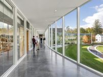 Auf einem neuenglischen Universitätscampus stehen die Gebäude derart inszeniert in der sanften Landschaft, man kann auch sagen, sie führten gemeinsam Konversation. Auf der Anlage des Hamilton College in Clinton, im US-Staat New York, ist solch ein Bild gar nicht so falsch, vor allem wenn man sich die Namen der Gebäude zu Gemüte führt. Da steht das Ruth and Elmer Wellin Museum bereits im Dialog mit dem Molly Root House und nun gesellt sich das Kevin and Karen Kennedy Center dazu. Und um nach Aufzählung der vielen Namenspatrone noch ein bisschen mehr Verwirrung zu stiften – das bereits bestehende Museum und das neue Zentrum sind von Machado and Silvetti Associates entworfen worden.