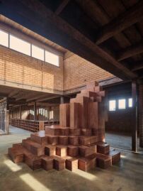 Die Architekt*innen verweisen auf „Prinzipien traditioneller afrikanischer Architektur“. Konkret besteht die Tragstruktur aus lokalem, termitenresistentem Azobéholz. Die Wände wurden aus ungebrannten Stampflehmziegeln gefertigt – teils als massive Flächen, teils perforiert, sodass geometrische Muster entstehen und das Licht weich in den Innenraum fällt. Dass Menschen aus der Region für die Bauarbeiten zunächst geschult wurden, kann als Teil des gemeinschaftsorientierten Ansatzes verstanden werden.
