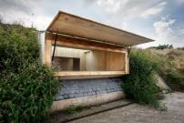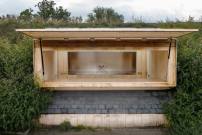 RO&AD Architecten eignen sich auch hier eine Typologie des historischen Festungsbaus an und gehen mit ihr spielerisch um. Ihr Kiosk, komplett aus Accoya-Holz gefertigt, ist in den Wall der ehemaligen Befestigungsanlage eingegraben und wird durch ein Oberlicht beleuchtet. Er beherbergt Toiletten und einen Informationspunkt auf der Festungsinsel, die heute für kleine öffentliche und private Veranstaltungen genutzt wird. Es ist paradox: Durch die Camouflage wird die ursprüngliche Funktion der Anlage erst erfahrbar gemacht, der Befestigungswall als solcher erst sichtbar. (df)