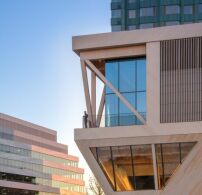 Im Bostoner Stadtteil Allston wird ein stillgelegtes Bahngelände im Auftrag der renommierten Harvard University zum Innovations- und Forschungsviertel Enterprise Research Campus (ERC) entwickelt. Nahe der Harvard Business School und der Harvard School of Engineering and Applied Sciences (SEAS) sollen hier künftig Forschung und Wirtschaft miteinander in Austausch treten. Vor Kurzem wurde mit dem Konferenzzentrum Rubenstein Treehouse einer der ersten Neubauten des ERC eröffnet. Den Entwurf dafür lieferten Studio Gang (Chicago u. a.), die gemeinsam mit Henning Larsen Architects (Kopenhagen u. a.) auch den Masterplan für den Campus erarbeiteten.