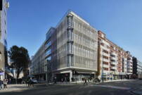 Neue Krankenhausbauten entstehen ob ihres ausufernden Programms häufig vor den Toren der Stadt. Im Londoner Bezirk Camden gibt es mit dem University College Hospital jedoch eine Institution, die konsequent auf Verdichtung setzt. Am Grafton Way nahe der U-Bahn-Station Euston Square entstand in den letzten Jahren nach langen Vorarbeiten ein neues Krebszentrum mit einer umfangreichen Abteilung für Chirurgie. Das Gebäude mit immerhin rund 37.000 Quadratmetern Nutzfläche schließt L-förmig eine bestehende Blockrandbebauung. Es wurde von Scott Tallon Walker Architects in Zusammenarbeit mit Edward Williams Architects entworfen und umgesetzt, die alle Büros in London unterhalten.
