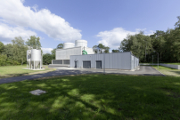 Unmittelbar neben dem Kühlturm wurde das Pumpenhaus mit der kompletten Regelungstechnik und Stromversorgung errichtet. Voraussichtlich wird sich der Kühlturm innerhalb von zwei Jahren um fünf Zentimeter mehr setzen als das Pumpenhaus. Um Schädigungen zu verhindern, wurden alle relevanten Verbindungsleitungen mit Kompensatoren ausgestattet. Wir stellen fest: Wolowitz wäre hier recht glücklich. (sj)