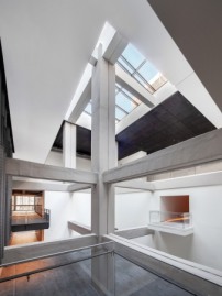 Eine zentrale Halle mit Oberlicht verbindet den zweiten, dritten und vierten Stock.
