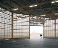 Das Areal und seine zwei Baukörper wurden so konzipiert, dass ein optimaler Workflow möglich ist. Zudem standen Aspekte wie Sicherheit, Akustik und großzügige Belichtung im Mittelpunkt der planerischen Überlegungen: Neben aller Funktionalität sollte auch ein ansprechendes Arbeitsumfeld entstehen. Die verwendeten „Zutaten“ sind so simpel wie überzeugend: Beton, Stahl und Polycarbonat bilden die Grundstruktur; eine komplett mit Holz verkleidete Fassade sowie ein begrüntes Dach schaffen den Bezug zur Landschaft ebenso wie eine angenehme Atmosphäre. Entstanden ist ein effizientes Ensemble, das durch seine Materialität und Form zum integrativen Teil des Landschaftsbildes wird, statt es – wie im Gewerbebau „auf der grünen Wiese“ leider oft zu finden – als grellbunter Fremdkörper zu stören. (da)