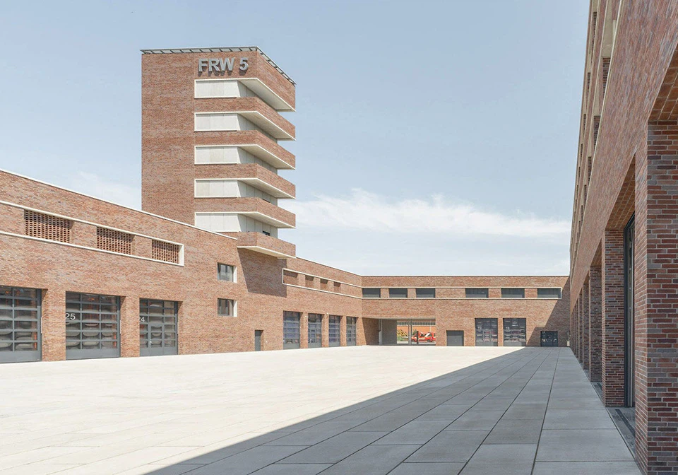 Neben seiner Funktion als Zweckbau müsse das circa 560 Quadratmeter Nutzfläche bietende Feuerwehrhaus auch ein „würdiger Sitz für diesen wichtigen Verein im Dorf sein“, so die Architekten. In diesem Sinne sei die Material- und Farbwahl getroffen worden, an der auch Künstler Manfred Alois Mayr beteiligt war. Die dunklen Langformatziegel der Fassade beziehen sich auf die lokale Tradition der Ziegelherstellung. Die Art des Verbands orientiere sich zudem an ausgefachten Lüftungsöffnungen, wie man sie an Stadelgebäuden im Ort findet. Die leicht irrisierende Ziegellasur lasse wiederum an die Reflektoren der klassischen Feuerwehruniform denken, schreiben die Architekt*innen.