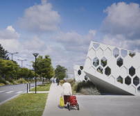 Die in Tourcoing ansässigen Architekten D’Houndt+Bajart sparen nicht mit poetischen Metaphern zu ihrem Projekt: Es handele sich um „eine mineralische Skulptur in Bewegung“; sie wollen „die Vergangenheit benutzen, um besser in die Zukunft zu kommen“, oder: „Die industriellen Wurzeln umarmen die zeitgenössische Welt.“ Auf Französisch klingt das noch bedeutungsvoller.