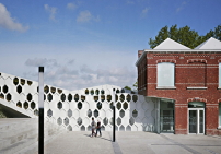 Die 90.000-Einwohner-Stadt Tourcoing in der französischen Region Nord-Pas-de-Calais ist Partnerstadt von Bottrop. Hier wie dort gibt es große Probleme durch den Niedergang der Industrie; in Tourcoing liegt die Arbeitslosenquote bei über 20 Prozent. Da ist es von besonderer Zeichenhaftigkeit, wenn das Gelände eines ehemaligen Industriebetriebs, der Spinnerei Tiberghien, zu einem Kulturstandort umgewandelt wird. Mit der Mediathek Andrée Chedid im Stadtviertel Belencontre geschieht das auf besonders sinnfällige Art: Das ehemalige Pförtnerhaus der Spinnerei wurde in das Projekt einbezogen; die Neubauten der Mediathek schließen sich in heutiger Formensprache an den Altbau an.