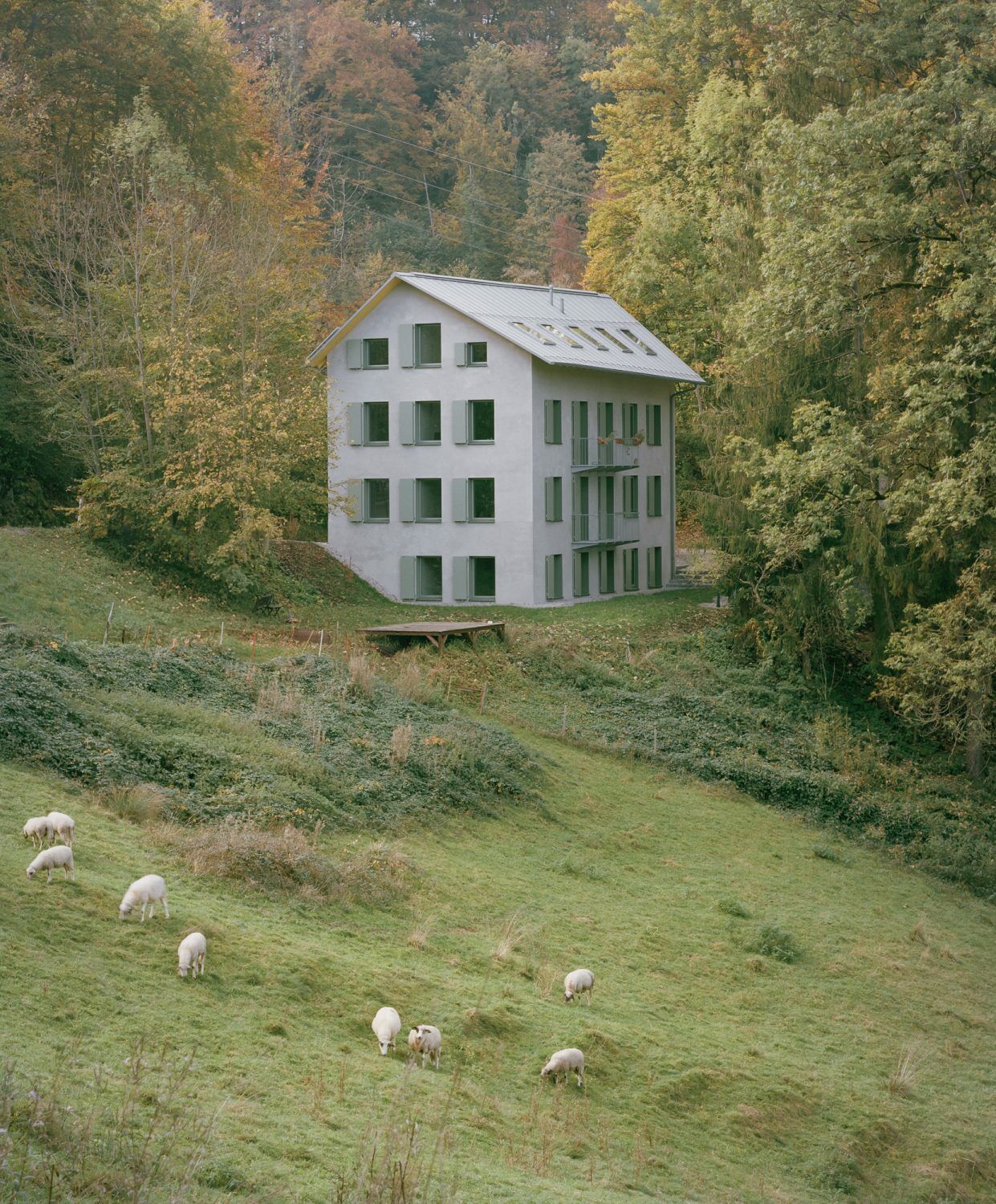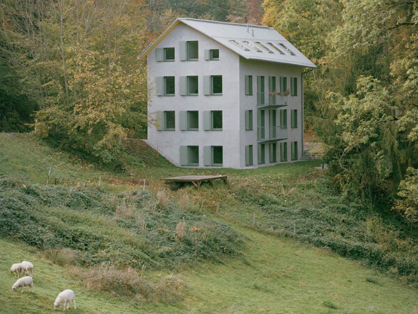 In den westlichen Ausläufern St. Gallens liegt zwischen Wald und Wiesen das Sitterwerk, ein öffentliches Zentrum für Kunst und Produktion in den Hallen einer ehemaligen Färberei. Südlich des Komplexes, nahe der Fürstenlandbrücke, stand einst ein Wohnhaus für Arbeiter*innen der Färberei. Im vergangenen Jahr wurde es durch einen Neubau von Studio Romano Tiedje ersetzt, das im Sitterwerk seinen Sitz hat. Bauherrin ist die Stiftung hausen + wohnen, die in der Region bezahlbaren Wohnraum bereitstellt.