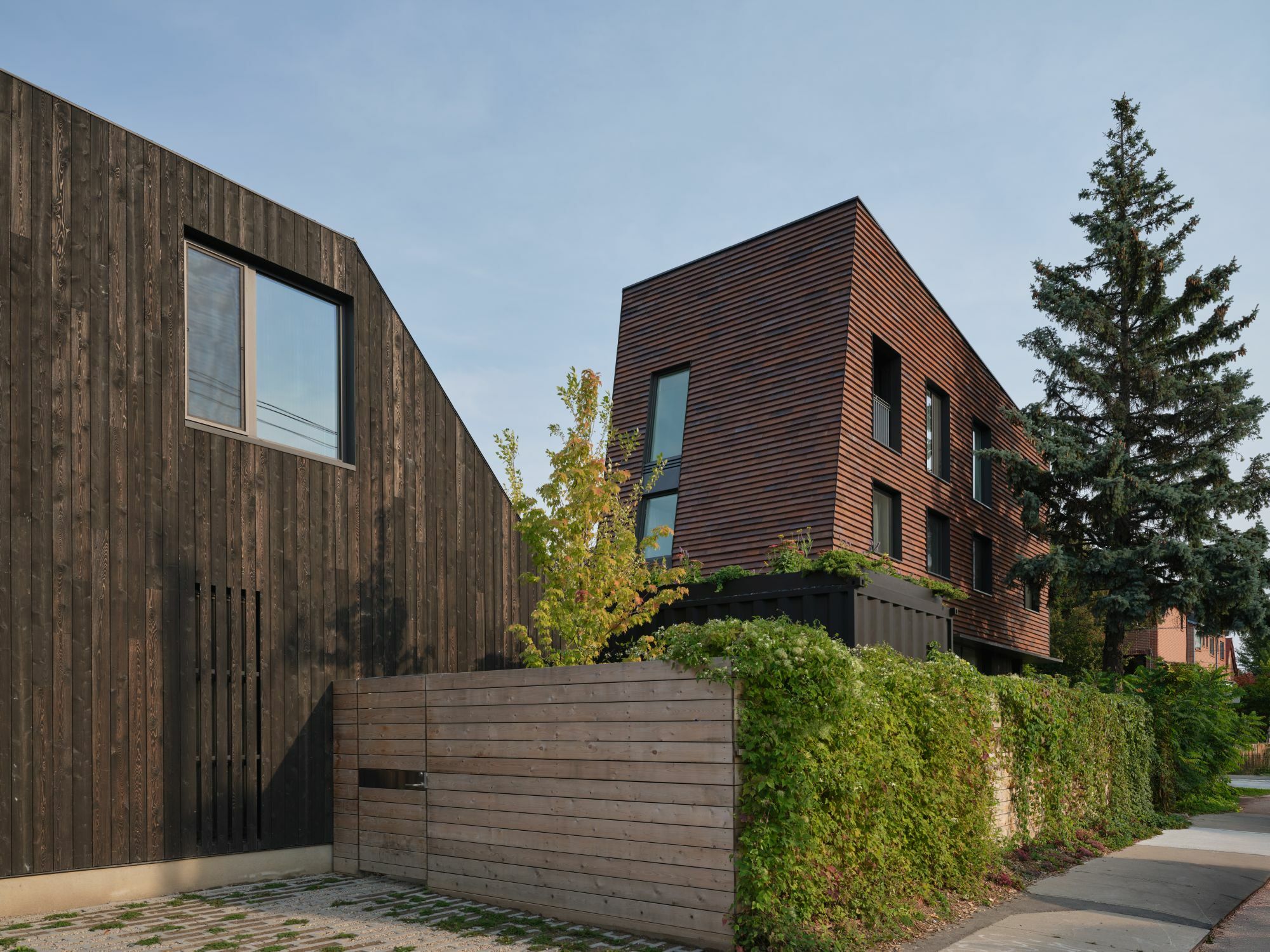Das Projekt haben die beiden Architekt*innen Janna Levitt und Dean Goodman selbst initiiert. Als Grundstück bot sich eine Ecklage am westlichen Rand von Harbord Village an. Dort stand ein einfaches zweigeschossiges Gebäude, mit dem die Fläche nur bedingt ausgenutzt war. Stattdessen haben LGA dort nun ein kleines Ensemble mit fünf Wohneinheiten errichtet. Ein dreigeschossiges Mehrfamilienhaus und ein zweigeschossiges Gartenhaus stehen sich hierbei gegenüber. Das Projekt firmiert laut Beschreibung als „Toronto’s erstes Multiplex Condominium“, was schlicht bedeutet, dass es sich um ein Mehrfamilienhaus mit Wohnungen in Privateigentum handelt – im eigenheimfixierten Nordamerika offenbar noch immer eine Rarität.