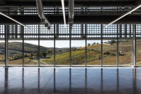 Von den mit viel Tageslicht verwöhnten Arbeitsplätzen öffnet sich der Blick in die hügelige Umgebung der Provinz Siena mit ihren Weinanbaugebieten und kleinen Dörfern. Die Grundidee für die Produktionsstätte sei gewesen, einen nahtlosen Übergang zur umgebenden Natur und eine hochwertige Arbeitsumgebung zu schaffen, erläutert Barbara Ponticelli von MetroOffice den Entwurf, der auf großzügige Öffnungen setzt. Die Kombination der Glasfassade mit einer zweiten, vorgehängten und leicht auskragenden Hülle aus Glasbausteinen sorgt dabei für Verschattung und wird zum charakteristischen Merkmal des Gebäudes.