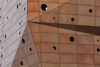 Tatsächlich erinnert das expressive Bauwerk an eine abstrahierte Kathedrale der Müllverbrennung. Das Erscheinungsbild wird allerdings weder durch Sandstein noch durch Sichtbeton – wie etwa bei Gottfried Böhm – geprägt, sondern durch eine äußere Fassade aus umbrafarbenen Aluminiumpaneelen. Diese sind unregelmäßig durchlöchert.