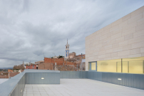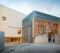 Alt und neu überlagern sich bei diesem Projekt auf interessante Weise – vielleicht nicht ganz nach dem Leitfaden der Denkmalpflege, aber so manche Architektenherzen werden bei dieser Epochencollage höher schlagen. Ursprünglich wollten die Architekten den benachbarten Bestandsbau der Casa del Conde komplett erhalten und zu einem Museum umbauen – damit hatten sie das Wettbewerbsverfahren der Gemeinde Hellín gewonnen. Im Zuge der Ausführungsplanung mussten sie ihre Pläne jedoch umwerfen; viel zu aufwendig und kostenintensiv wäre dieses Projekt geworden. Deshalb beschlossen sie sich für einen Abriss, wollten sich bei dem Neubau aber auf die Erhaltung der alten Fassade konzentrieren. Teilstücke sowie Säulen und andere Elemente der Bestandsfassade wurden deshalb in den Neubau integriert – teils als dekorierendes Ornament, teils als ausgestelltes Denkmalelement.