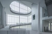 Das vor die Wände aus Low-E-Glas oder Metall gehängte Aluminium-Streckmetallgitter trägt zur Verschattung bei und reduziert die Winddruckbelastung. Und wie bereits beim New Museum in New York’s Lower East Side oder der Bocconi-Campuserweiterung in Mailand dient die durchlässige Fassade zudem der Kommunikation mit der (hier natürlich weitaus grüneren) Umgebung: durch leichte Spiegelung und Ausblicke auf die Parklandschaft bei Tageslicht, abends durch kuratierte Einblicke in einzelne Räume wie zum Beispiel in das Lager der Sammlung, die der zeitgenössischen Kunst aus Taiwan und der ganzen Welt gewidmet ist. (kms)