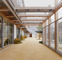 Der Ausbaustandard des Gebäudes ist dabei betont robust gehalten. Die Balkone bestehen aus einem selbsttragenden Stahlgerüst, während im Inneren die Böden weitestgehend unbehandelt sind. Für einen hellen Kontrast sorgen hingegen die Sonnenpaneele aus weiß lackiertem Aluminium und die Fassadenverkleidung aus Douglasfichte. (sb)