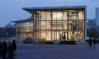 Wüsste man es nicht bereits, so könnte man es vielleicht an der gekrümmten Glasfassade erkennen: Der am 28. Januar eingeweihte Neubau für die Wirtschaftswissenschaftliche Fakultät auf dem Campus der Heinrich-Heine-Universität in Düsseldorf stammt aus der Feder des Düsseldorfer Büros Ingenhoven Architekten (siehe BauNetz-Meldung zur Grundsteinlegung vom 3. Juli 2009).