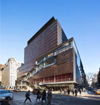 Das neue Gebäude für die New School in New York wurde Ende Januar 2014 eingeweiht. Es konzentriert die Einrichtungen dieser pazifistisch gesonnenen Reformuniversität in einem sechzehnstöckigen Gebäude im dicht bebauten New Yorker Stadtteil Greeenwich Village. Der Entwurf stammt von dem New Yorker Büro Skidmore, Owings & Merrill LLP (SOM). In den oberen neun Geschossen sind Studentenwohnungen eingerichtet worden, während in den unteren sieben Etagen Mehrzweckhörsäle, Entwurfsstudios, Labore, ein Audimax mit 800 Sitzen und eine Uni-Bibliothek untergebracht sind.