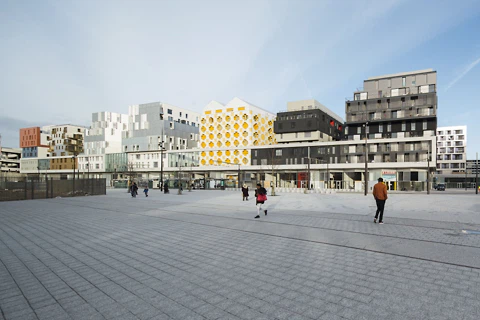 Das Verhältnis der engen Kapitale zu ihrer ausufernden Umgebung ließ Ex-Präsident Nicolas Sarkozy 2009 mit seinem medial aufgeladenen Wettbewerb „Le Grand Pari(s)“ untersuchen, bei dem namhafte Büros wie MVRDV oder Jean Nouvel eine bessere Anbindung der Banlieues an das Zentrum sowie eine optimierte Vernetzung untereinander erarbeiteten. Auch die Pariser Bürgermeisterin Anne Hidalgo startete 2017 mit ihrem Ideenwettbewerb „Reinventer Paris“ eine Belebung urbaner Schnittstellen zwischen der Hauptstadt und den Banlieues – vor allem mit ambitionierten Wohnbauprojekten. Sou Fujimotos Sonnenschirmgebirge ist ein Resultat von Hidalgos Vorstoß. Am Périphérique steht auch die alte Lagerhalle, über deren Fundament Kengo Kuma, Gigon/Guyer und 13 weitere Büros ein Ensemble an Sozial- und Eigentumswohnungen realisierten. Letzteres verdeutlicht ebenso wie die Sanierung des einst abrissgefährdeten Tour Bois le Prêtre von Druot und Lacaton Vassal eine bemerkenswerte Entwicklung: Anstatt abzureißen und neu zu bauen, wird städtebaulich und architektonisch umgedacht. (sj)