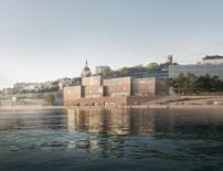 Nachdem der ursprüngliche Plan per Gerichtsentscheid vom Tisch war, suchte die Nobel Foundation einen Bauplatz, auf den sich alle einlassen konnten. 2020 beauftragte sie David Chipperfield Architects mit einer Konzeptstudie für die Uferfront am Slussen, der Schleuse zwischen Altstadt und Södermalm, wo die Gewässer des Mälaren und der Ostsee aufeinandertreffen. Das einst von Industrie und Transportinfrastruktur geprägte Areal erfährt seit längerem eine milliardenschwere Neuentwicklung, basierend auf einem Masterplan von Foster + Partners. Das Nobel Center wird darin eine prominente Stelle neben dem Fotografiska einnehmen, an der zuvor ein Bürobau angedacht war. 2022 kam der entsprechende Direktauftrag für Chipperfield und Team, die mit Sweco Architects (Stockholm) zusammenarbeiten.