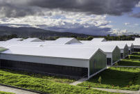 Geschwindigkeit ist der zentrale Aspekt dieses Krankenhaus-Neubaus im Regenwald: Puyo liegt mitten in Ecuador – und ist trotz der abgeschnittenen Lage und des feuchten Klimas eine der am schnellsten wachsende Stadt des lateinamerikanischen Landes. Das hat Auswirkungen auf die Infrastruktur. Die Regierung stellt deshalb Gelder zur Verfügung, die unter anderem in den Bau dieses neuen Krankenhauses flossen. Es musste jedoch in Rekordzeit, nämlich innerhalb eines Jahres, realisiert werden. Die Pläne stammen von Pm, Mt (für Patricio Matínez, und Maximiá Torruella) aus Barcelona – ein Büro, das auf Bauten im Gesundheitswesen spezialisiert ist.