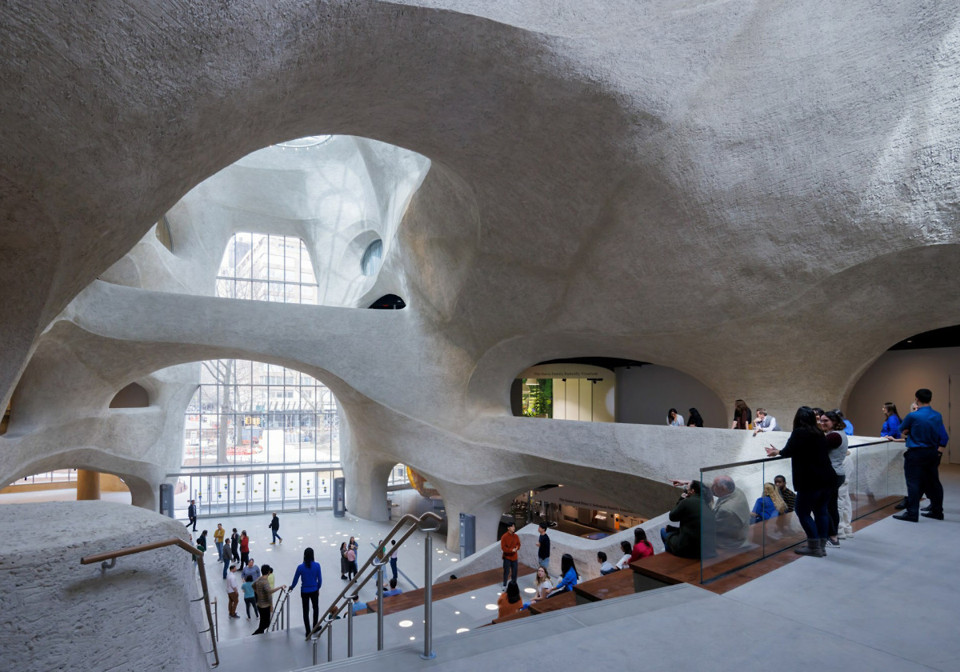 Aber auch Umbauten wie die Transformation eines Silos zum Museum für zeitgenössische afrikanische Kunst in Kapstadt können begeistern. Hier haben Heatherwick Studio einzelne Betonröhren so weggeschnitten, dass ein riesiges, surreal wirkendes Atrium im Inneren entsteht. In Rotterdam wurde ebenfalls aufwendig saniert: MAD statteten das Museum für Migration mit einem „Tornado“ aus. Auf dem Dach des ehemaligen Lagerhauses glänzt eine mit Edelstahl verkleidete, geschwungene Form, die sich auch im Inneren vertikal durch das Gebäude zieht. (ee)