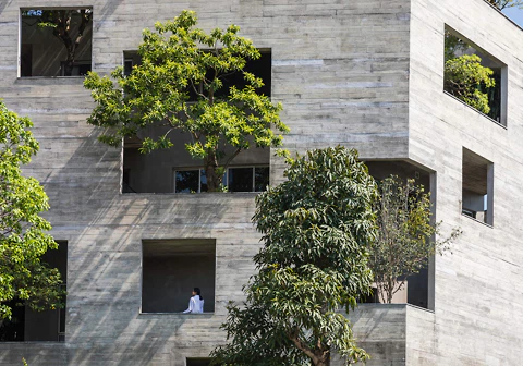 Planerische Lösungen für diese klimatischen Herausforderungen findet man in tropischen und subtropischen Ländern. Auch dort rattern zwar bisher noch massenweise Klimaanlagen. Aber es gibt zugleich ein vernakuläres Wissen über natürliche Klimatisierung, das von immer mehr Architekt*innen reaktiviert wird – beispielsweise in Vietnam. Die Architektur des südostasiatischen Landes ist international noch viel zu wenig bekannt. Auch das BauNetz-Archiv quillt bedauerlicherweise nicht gerade über mit Beiträgen zu vietnamesischen Projekten. Dabei inspiriert nicht zuletzt die Synthese von internationaler Moderne und regionaler Tradition, an der immer mehr Architekt*innen in Vietnam arbeiten.