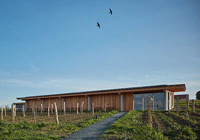 Auch wer neben Architektur Lust auf Natur oder Entspannung hat, wird in der Region fündig. Die Hügellandschaft ist geprägt von Weinbergen und Weingütern – ideal für eine Radtour durch die südmährische Winzerkultur. Mögliche Zwischenstopps sind der Neubau des Weinguts Přátelé Pavlova von Atelier Štěpán, ein zeitgenössisches Winzerhaus mitten im Weinberg, oder der kreisrunde Aussichtsturm von Keeo4design, der einen weiten Blick über die Landschaft bietet.