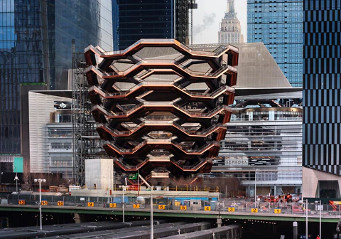 Da ist die neue Bahnhofshalle der Penn Station, die den öffentlichen Nahverkehr feiert, die privat finanzierte, auf Stelzen im Hudson River stehende künstliche Insel „Little Island“, die zusätzliche Grünfläche bietet, oder die Stahlwabenskulptur „Vessel“, die seit mehreren Suizidsprüngen nicht mehr begehbar ist. Da ist der im Sommer in Brooklyn eröffnete Amant Art Campus, der Künstler*innen temporär Raum zum Arbeiten bietet, und das umgenutzte Fabrikgebäude, das neue Büroräume schafft. Das MoMA hat ebenfalls weitere Räume bekommen, die Mid-Manhattan Library wurde renoviert, die Highline verlängert und am Hunters Point entstand eine neue Bibliothek. Dass die Planungen von namhaften Büros kommen, ist ein weiteres Argument dafür, sich diese Auswahl für den nächsten New-York-Besuch vorzumerken. (fm)