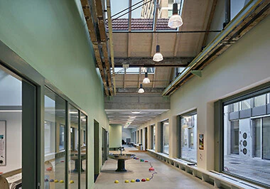 Auffällig sind die großen Dimensionen der oftmals denkmalgeschützten Bauten, in denen augenscheinlich enormes Gestaltungspotenzial liegt. Viele Planer*innen spielen mit den Spannweiten und großen Volumen, ziehen neue Geschosse ein oder setzen Lufträume in Szene. Natürlich stellt sich immer die Frage, was das historische Tragwerk aushalten kann. Während mehrgeschossige Fabriken auf robusten Konstruktionen aus Eisen, Mauerwerk oder Stahlbeton basieren, tragen Hallendachbinder mitunter nicht mehr als ihre Dachhaut.
