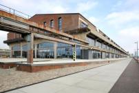 Dabei wurden 25.000 Quadratmeter Lagerfläche in ein Technik- und Erlebniszentrum für historische Fahrzeuge im Erdgeschoss sowie Wohn- und Büroflächen im Obergeschoss umgewandelt.