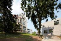 Die bestehende historische Villa wurde von einem Fünfziger-Jahre-Anbau befreit und möglichst nah an den ursprünglichen Zustand zurückgeführt. Die drei neuen, nördlich liegenden Gebäude sind so dimensioniert, dass sie sich gut in den städtebaulichen Kontext eingliedern.