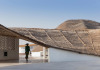 Das Erdgeschoss des Ensembles gestalten sie als einen auffallend offenen, einladenden Bereich: Schlanke Säulen umrahmen die Glasfassade, durch die man wiederum einen massiven Kern mit Natursteinverkleidung erkennt. Die abgerundeten Gebäudeecken werden durch kantige Einschnitte ergänzt: Als Vorbild zitieren die Architekten die Zacken einer Säge, wobei nicht bekannt ist, in welcher Beziehung diese Metaphorik zur Nutzung steht.