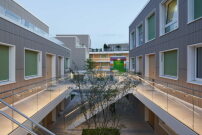 Ein Projekt, das direkt im Zentrum von Gersthofen für Nachverdichtung sorgt, ist der Neue Kollerhof, entworfen vom Münchner Büro Peter Bohn + Assoziierte. Auf einer alten Hofstelle entstand dort in Zusammenarbeit mit HinnenthalSchaar Landschaftsarchitekten (München) ein gemischt genutztes Quartier mit 4.250 Quadratmetern Geschossfläche. Das Raumprogramm: Ein städtisches Begegnungszentrum mit Mehrzweckraum, betreutes Wohnen, Geschäfte und Mietwohnungen. Als Bauherr tritt der Gersthofener Landwirt und Stadtrat Josef Koller auf, dem der einstige Bauernhof gehört.