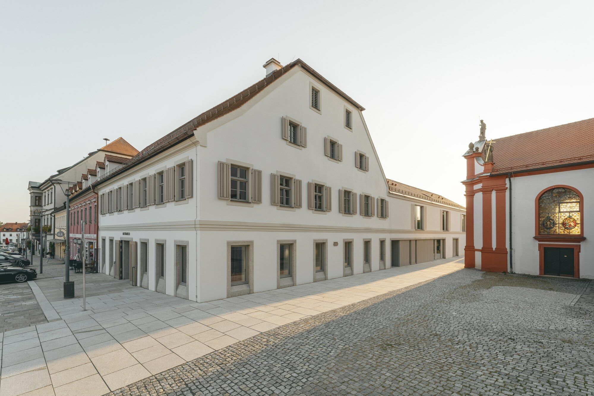 Aus Leerstand wird Rathaus: In der kleinen Kreisstadt Tirschenreuth am Rand der nordöstlichen Oberpfalz haben Brückner & Brückner Architekten (Tirschenreuth/Würzburg) ein altes Ackerbürgerhaus in ein modernes Verwaltungsgebäude verwandelt. Direkt am Marktplatz, wo auch der weiterhin genutzte Bestandsbau (Rathaus I) steht, umfasst es einen neuen Rats- sowie Sitzungssaal und bietet Platz für verschiedene, bisher über die Stadt verteilte Ämter. Das Ergebnis (Rathaus II) gefällt auch Landesvater Markus Söder, der zur Eröffnung kam. Traditionelle Bauten zu erneuern, sei manchmal zwar etwas teurer. Dafür sei deren Substanz aber oft besser als die vieler Bauten aus den 1970ern, die man vergessen könne – so Söder auf Oberpfalz TV.