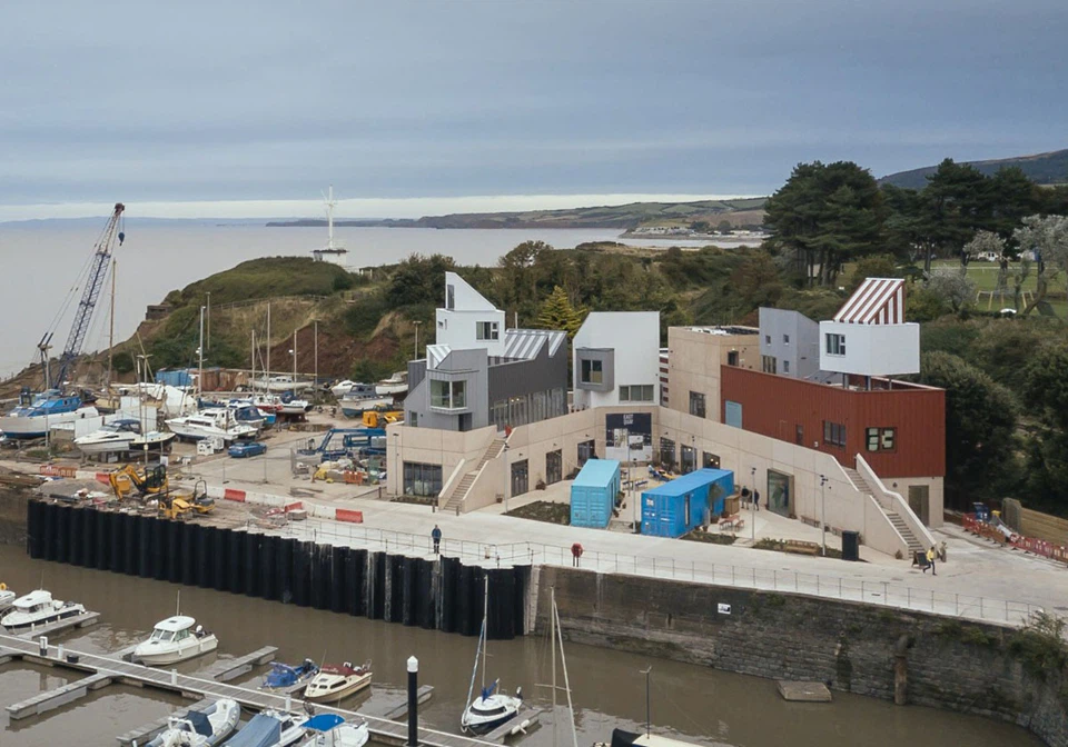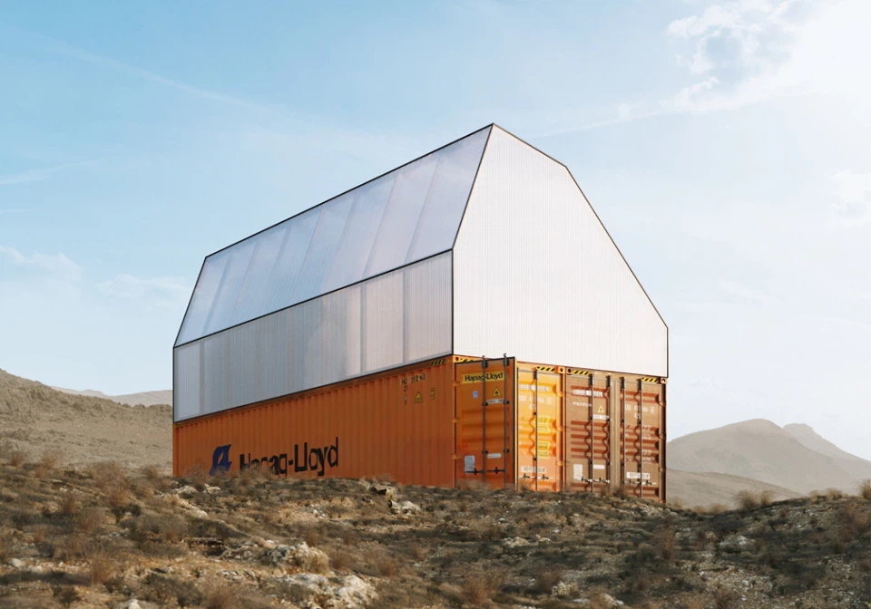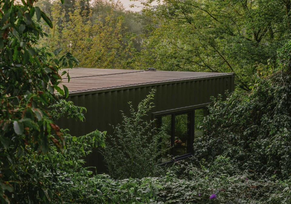 Auch die versetzte Anordnung und der Container dient der thermischen Effizienz des Bauwerks, erklären Wallmakers. Die nach Süden ausgerichtete Fassade ist größtenteils verschlossen, um den solaren Wärmegewinn zu begrenzen. Offene, verglaste Bereiche im Erdgeschoss lassen viel Licht in den unteren Gebäudeteil. In Kombination mit eingeschnittenen Oberlichtern wird Querlüftung ermöglicht.