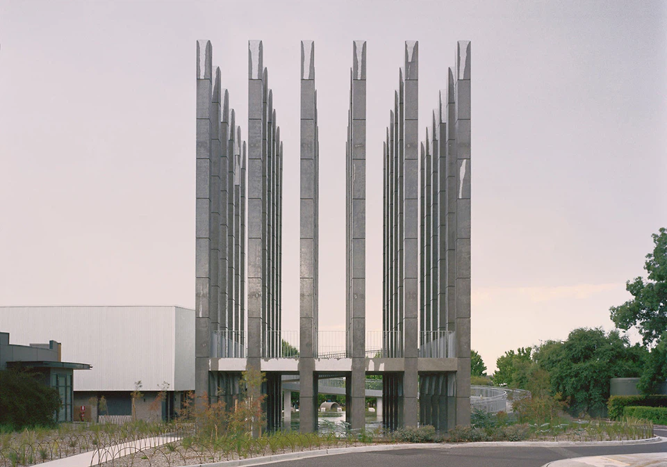 Das chilenische Büro Pezo von Ellrichshausen (Concepción) hat in den Jardins de Médongaule in der südkoreanischen Provinz Gyeonggi eine Betonstruktur mit 16 riesigen, in den Himmel aufragenden Stützen errichtet. Die Struktur mit Dachterrasse und Restaurant namens Rest ist die neueste Ergänzung einer großen Gartenanlage östlich von Seoul, die sich als kuriose Mischung koreanischer Gartentradition und westlicher Philosophie präsentiert.