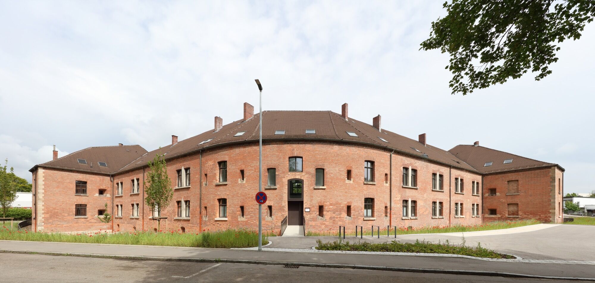 Das sogenannte Kriegsspital am Glacis-Gelände der einstigen Bundesfestung Ulm, das heute als städtischer Park genutzt wird, hat eine umfassende Sanierung durchlaufen. Gleichzeitig wurde sein Inneres zu Gewerbeeinheiten und Wohnungen umgebaut. Das 2024 fertigstellte Projekt markiert jedoch lediglich den Anfang einer größeren Transformation, die in einem zweiten Bauabschnitt eine Aufstockung und in einem dritten Bauabschnitt eine Neubebauung am Grundstücksrand umfassen soll. Geplant wird sie von f64 Architekten und Stadtplaner (Kempten) im Auftrag der Panescu Immobiliengesellschaft, die schon seit Längerem Eigentümerin des Areals ist.